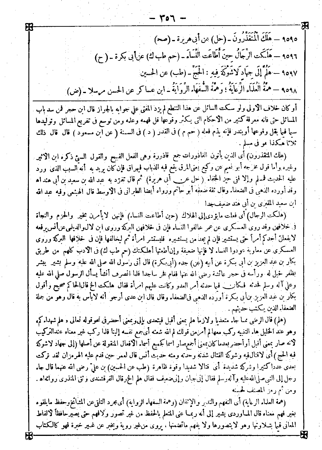 9598 - (همة العلماء الرعاية) أي التفهم والتدبر والإتقان (وهمة السفهاء الرواية) أي مجرد التلقي عن المشائخ وحفظ ما يلقوه بغير فهم معناه قال الماوردي: يشير إلى أنه ربما عنى المتعلم بالحفظ من غير تصور ولا فهم حتى يصير حافظا لألفاظ المعاني قيما بتلاوتها وهو لا يتصورها ولا يفهم ما تضمنها يروي من غير روية ويخبر عن غير خبرة فهو كالكتاب -[357]- الذي لا يدفع شبهة ولا يؤيد حجة وربما استثقل المتعلم الدرس والحفظ فاتكل على الرجوع إلى الكتب ومطالعتها عند الحاجة فما هو إلا كمن أطلق ما صاده ثقة بالقدرة عليه بعد الامتناع منه ولا تعقبه الثقة إلا خجلا والتفريط إلا ندما وهذه حالة قد يدعو إليها ثلاثة أشياء إما الضجر عن معاناة الحفظ ومراعاته أو طول الأمل في التوفر عليه عند نشاطه أو فساد الرأي في عزماته وما درى أن الضجور خائب وطويل الأمل مغرور وفاسد الرأي مصاب والعرب تقول في أمثالها حرف في قلبك خير من ألف في كتبك وقالوا لا خير في علم لا يعبر معك الوادي ولا يخبر بك النادي