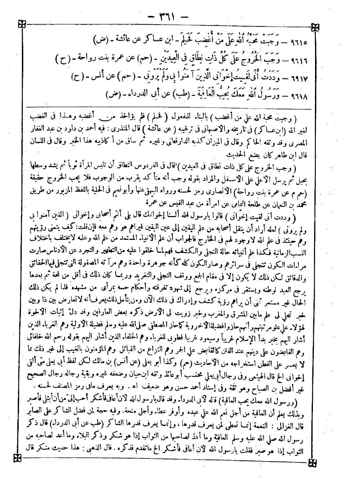 -[361]- 9615 - (وجبت محبة الله على من أغضب) بالبناء للمفعول (فحلم) فلم يؤاخذ من أغضبه وهذا في الغضب لغير الله