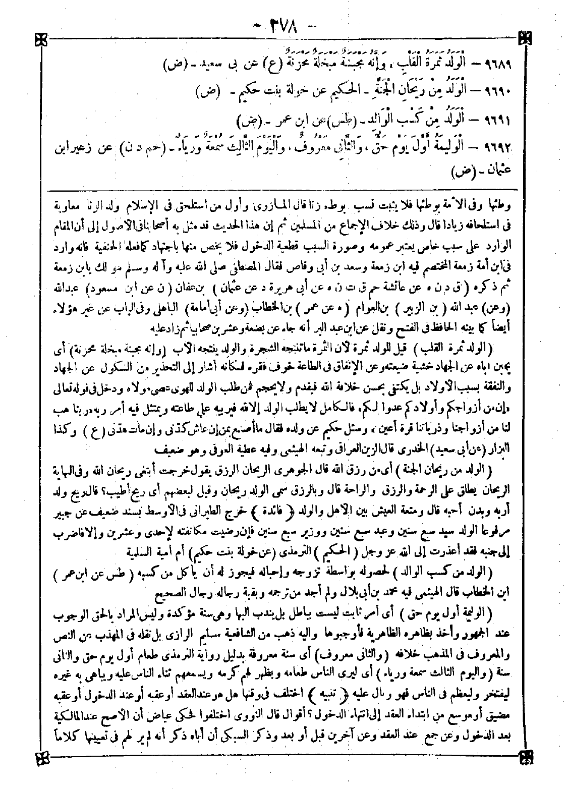 9691 - (الولد من كسب الوالد) لحصوله بواسطة تزوجه وإحباله فيجوز له أن يأكل من كسبه
