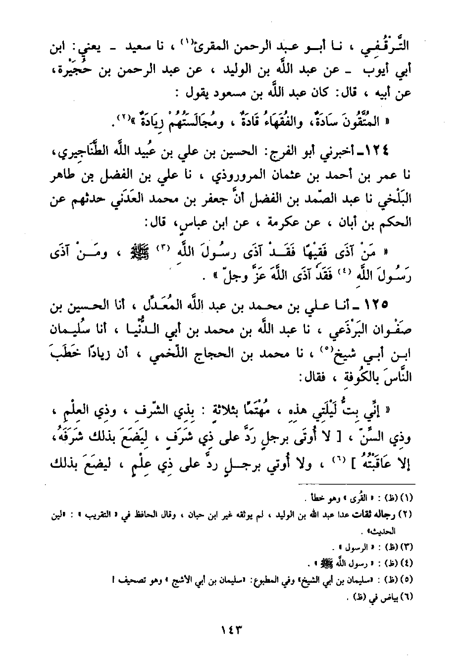 أَخْبَرَنِي أَبُو الْفَرَجِ الْحُسَيْنُ بْنُ عَلِيِّ بْنِ عُبَيْدِ اللَّهِ الطَّنَاجِيرِيُّ , نا عُمَرُ بْنُ أَحْمَدَ بْنِ عُثْمَانَ الْمَرْوَرُوذِيُّ , نا عَلِيُّ بْنُ الْفَضْلِ بْنِ طَاهِرٍ الْبَخْلِيُّ , نا عَبْدُ الصَّمَدِ بْنُ الْفَضْلِ , أَنَّ جَعْفَرَ بْنَ مُحَمَّدٍ الْعَدَنِيَّ , حَدَّثَهُمْ , عَنِ الْحَكَمِ بْنِ أَبَانَ , عَنْ عِكْرِمَةَ , عَنِ ابْنِ عَبَّاسٍ , قَالَ: «مَنْ آذَى فَقِيهًا فَقَدْ آذَى رَسُولَ اللَّهِ صَلَّى اللهُ عَلَيْهِ وَسَلَّمَ , وَمَنْ آذَى رَسُولَ اللَّهِ فَقَدْ آذَى اللَّهَ عَزَّ وَجَلَّ»