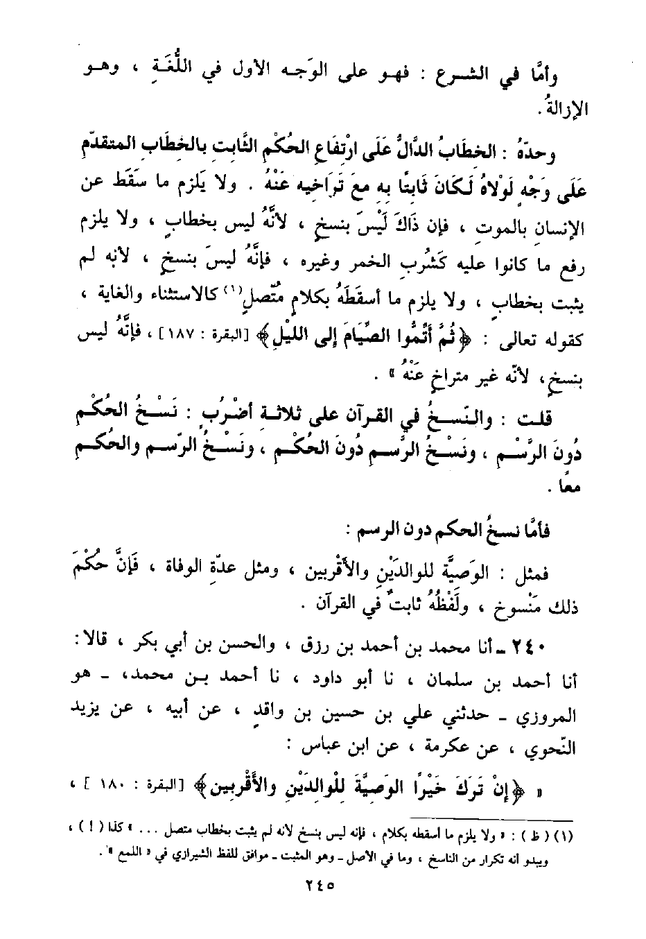 ⦗٢٤٦⦘ , «فَكَانَتِ الْوَصِيَّةُ كَذَلِكَ , حَتَّى نَسَخَتْهَا آيَةُ الْمِيرَاثِ»