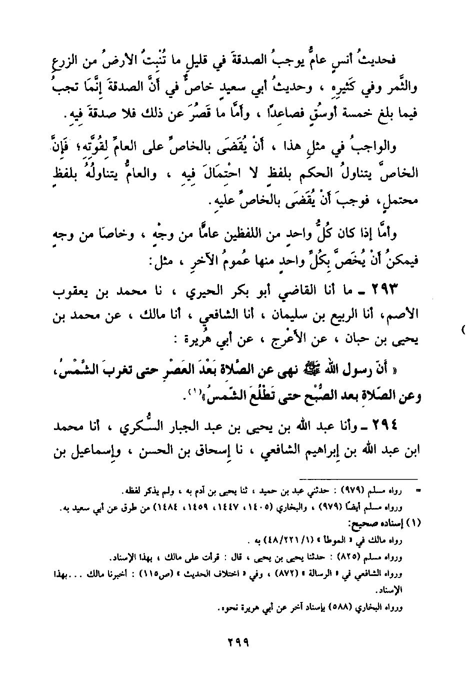 مَا أنا الْقَاضِي أَبُو بَكْرٍ الْحِيرِيُّ , نا مُحَمَّدُ بْنُ يَعْقُوبَ الْأَصَمُّ , أنا الرَّبِيعُ بْنُ سُلَيْمَانَ , أنا الشَّافِعِيُّ , أنا مَالِكٌ , عَنْ مُحَمَّدِ بْنِ يَحْيَى بْنِ حَبَّانَ , عَنِ الْأَعْرَجِ , عَنْ أَبِي هُرَيْرَةَ: أَنَّ رَسُولَ اللَّهِ صَلَّى اللهُ عَلَيْهِ وَسَلَّمَ «نَهَى عَنِ الصَّلَاةِ بَعْدَ الْعَصْرِ حَتَّى تَغْرُبَ الشَّمْسُ , وَعَنِ الصَّلَاةِ بَعْدَ الصُّبْحِ حَتَّى تَطْلُعَ الشَّمْسُ»