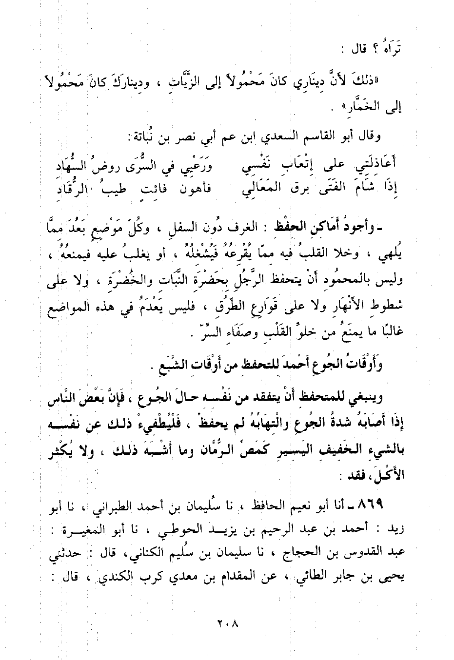 تَرَاهُ؟ قَالَ: ذَلِكَ لِأَنَّ دِينَارِي كَانَ مَحْمُولًا إِلَى الزَّيَّاتِ , وَدِينَارُكَ كَانَ مَحْمُولًا إِلَى الْخَمَّارِ وَقَالَ أَبُو الْقَاسِمِ السَّعْدِيُّ ابْنُ عَمِّ أَبِي نَصْرِ بْنِ نُبَاتَةَ: