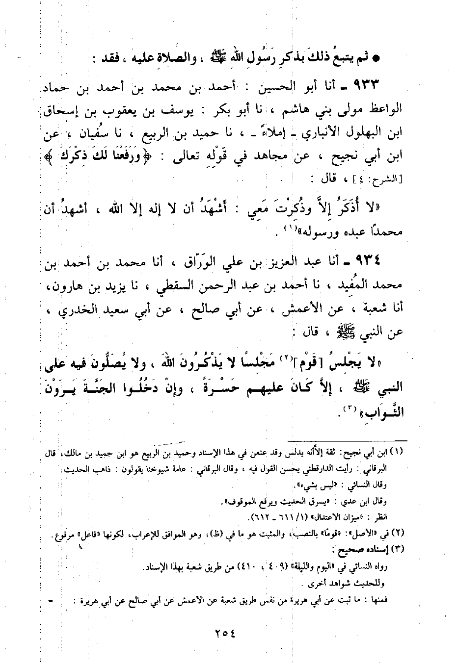 أنا عَبْدُ الْعَزِيزِ بْنُ عَلِيٍّ الْوَرَّاقُ , أنا مُحَمَّدُ بْنُ أَحْمَدَ بْنِ مُحَمَّدٍ الْمُفِيدُ , نا أَحْمَدُ بْنُ عَبْدِ الرَّحْمَنِ السَّقَطِيُّ , نا يَزِيدُ بْنُ هَارُونَ , أنا شُعْبَةُ , عَنِ الْأَعْمَشِ , عَنْ أَبِي صَالِحٍ , عَنْ أَبِي سَعِيدٍ الْخُدْرِيِّ , عَنِ النَّبِيِّ صَلَّى اللهُ عَلَيْهِ وَسَلَّمَ , قَالَ: «لَا يَجْلِسُ قَوْمٌ مَجْلِسًا لَا يَذْكُرُونَ اللَّهَ , وَلَا يُصَلُّونَ فِيهِ عَلَى النَّبِيِّ صَلَّى اللهُ عَلَيْهِ وَسَلَّمَ , إِلَّا كَانَ عَلَيْهِمْ حَسْرَةً , وَإِنْ دَخَلُوا الْجَنَّةَ يَرَوْنَ الثَّوَابَ»