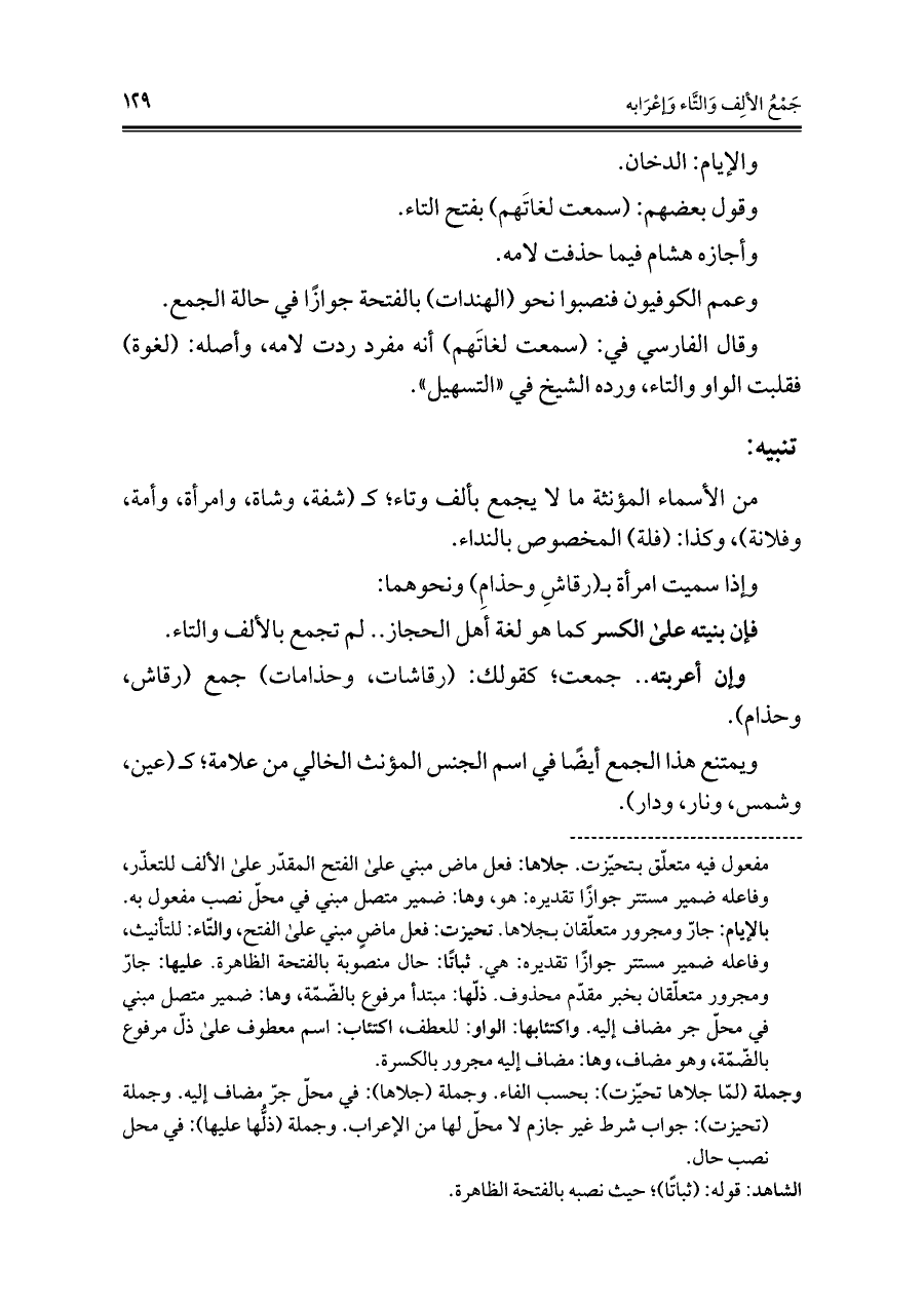 وعمم الكوفيون فنصبوا نحو (الهندات) بالفتحة جوازًا في حالة الجمع.