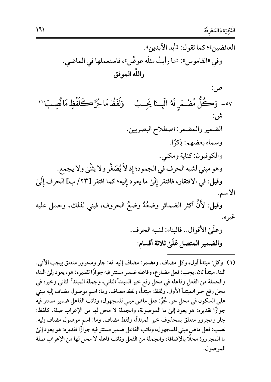 ٥٧ - وَكُلُّ مُضْمَرٍ لَهُ الْبِنَا يَجِبْ ... وَلَفظُ مَا جُرَّ كَلَفْظِ مَا نُصِبْ (¬١)