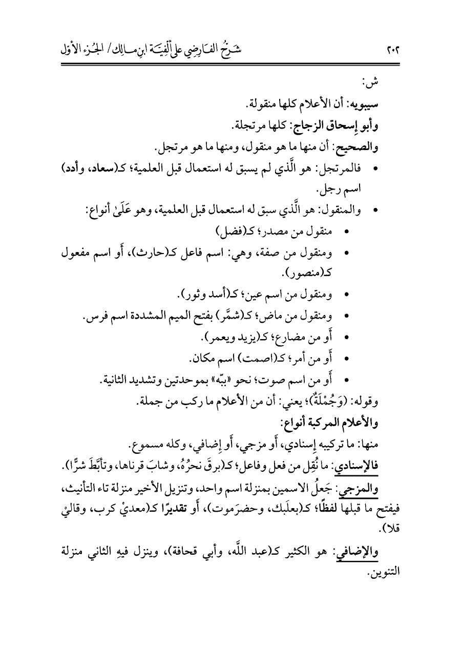 * ومنقول من صنة، وهي: اسم فاعل كـ (حارث)، أَو اسم مفعول كـ (منصور).