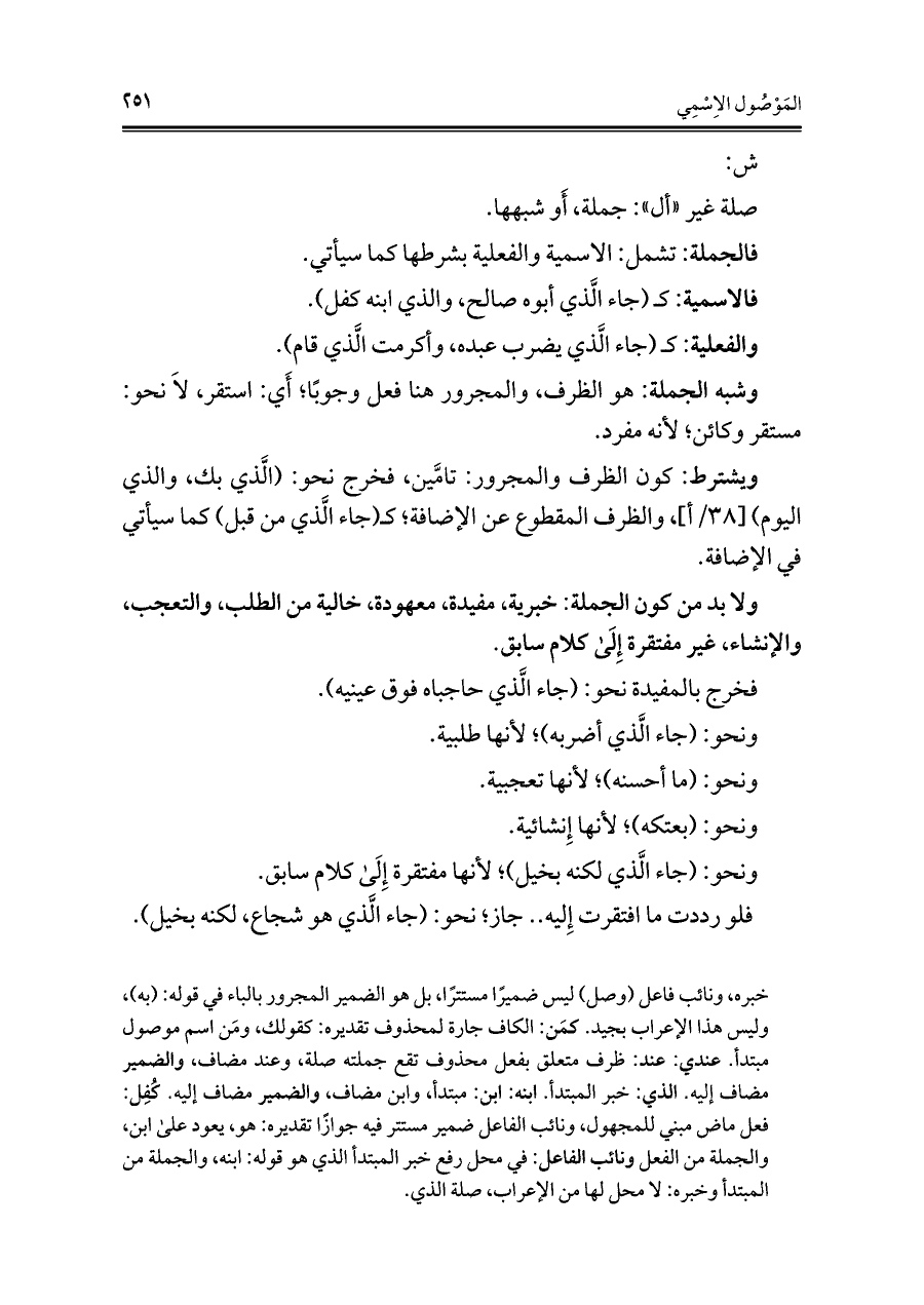 فالاسمية: كـ (جاء الَّذي أبوه صالح، والذي ابنه كفل).