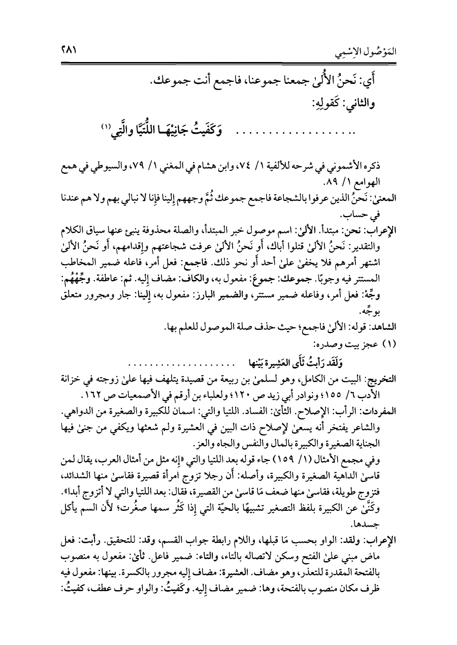 ..................... ... وَكَفَيتُ جَانِيْهَا اللُّتَيَّا والَّتِي (¬١)
