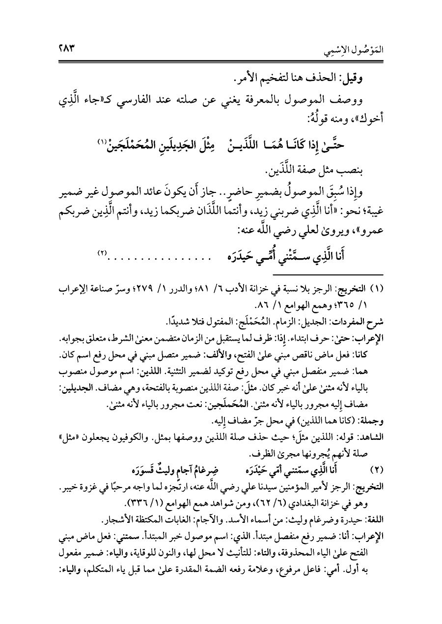 حتَّى إِذا كَانَا هُمَا اللَّذَينْ ... مِثْلَ الجَدِيلَينِ المُحَمْلَجَينْ (¬١)