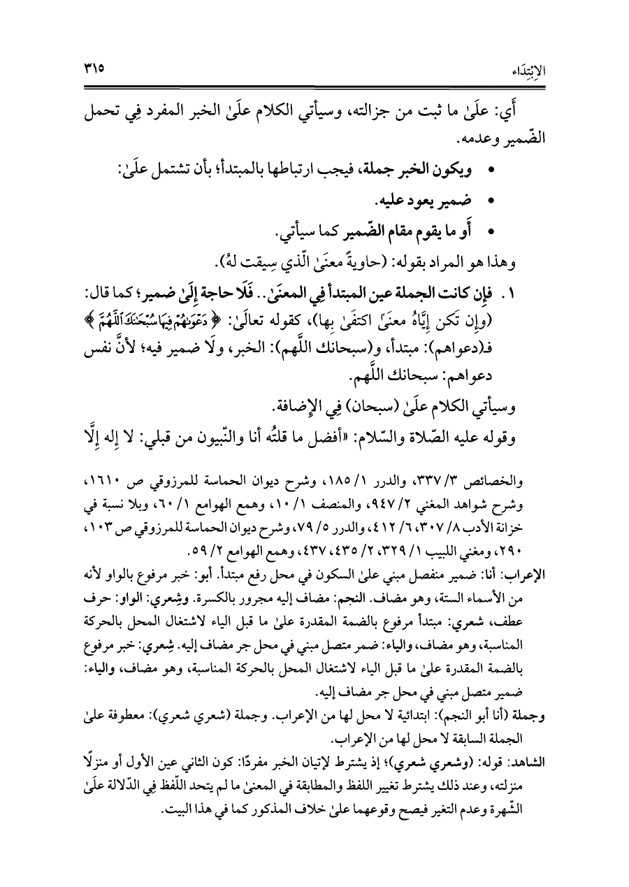 • أَو ما يقوم مقام الضّمير كما سيأتي.