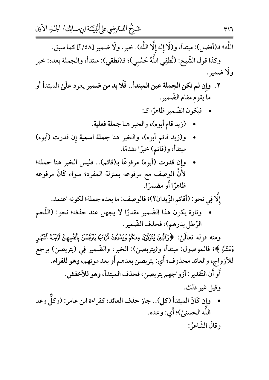 ٢. وإِن لم تكن الجملة عين المبتدأ .. فَلَا بد من ضمير يعود علَى المبتدأ أو ما يقوم مقام الضّمير.