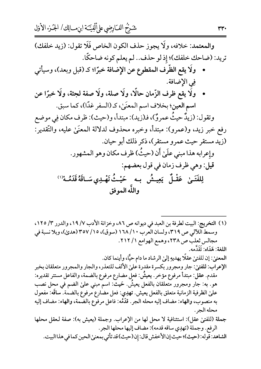 وإِعرابه هذا مبني علَى أَن (حيثُ) ظرف مكان وهو المشهور.