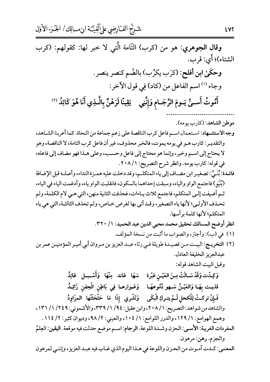 انظر أوضح المسالك تحقيق محمد محيي الدين عبد الحميد: ١/ ٣٢٠.