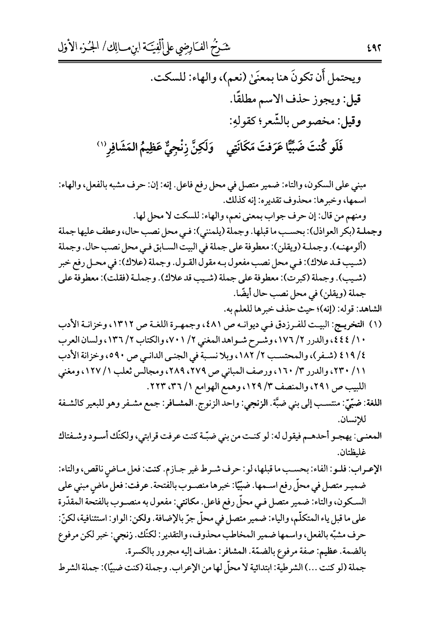 كتاب شرح الفارضي على ألفية ابن مالك (اسم الجزء: 1)