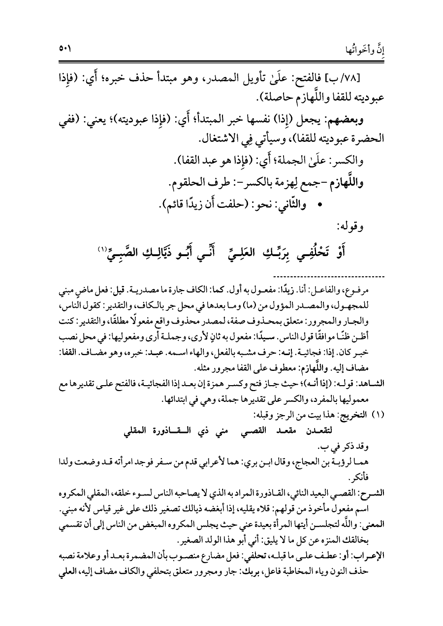 أَوْ تَحْلُفِي بِرَبِّكِ العَلِيِّ ... أَنِّي أَبُو ذَيَّالِكِ الصَّبِيِّ (¬١)