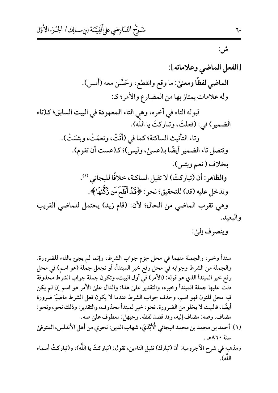 (١) أحمد بن محمد بن محمد البجائي الُاعرّبذيّ، شهاب الدين: نحوي من أهل الأندلس، المتوفى سنة ٨٦٠ هـ.