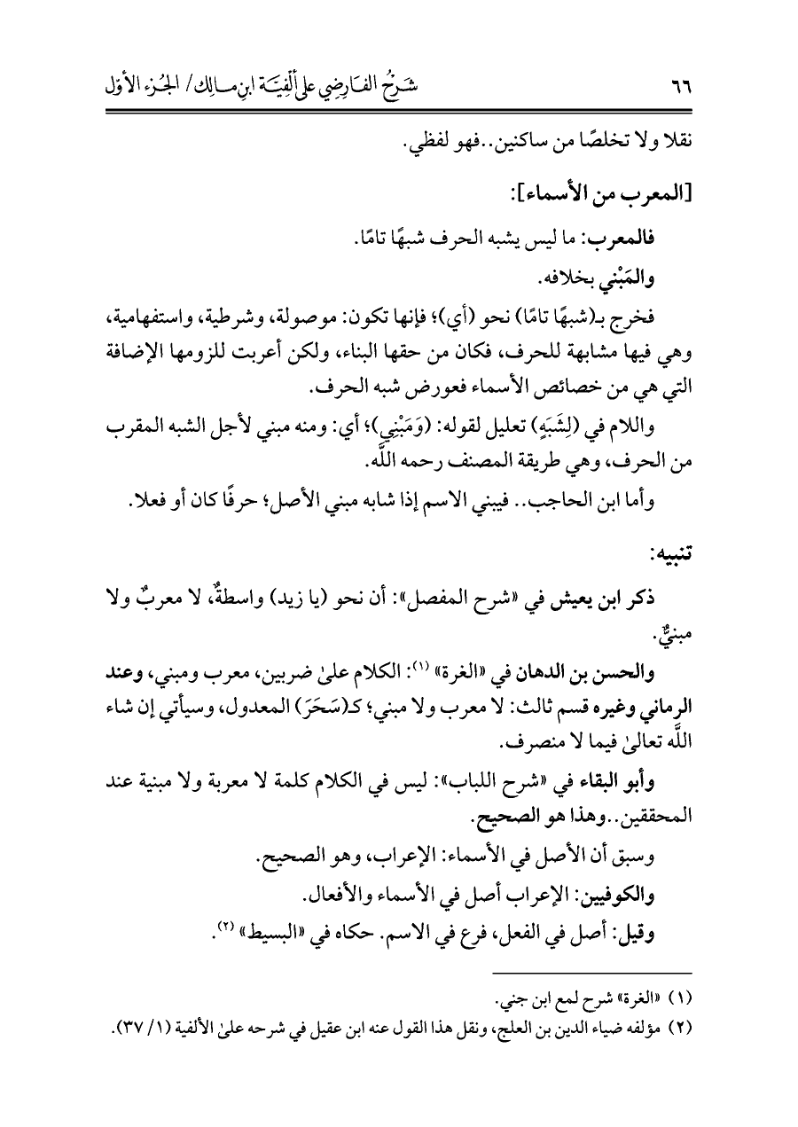 (¬٢) مؤلفه ضياء الدين بن العلج، ونقل هذا القول عنه ابن عقيل في شرحه على الألفية (١/ ٣٧).