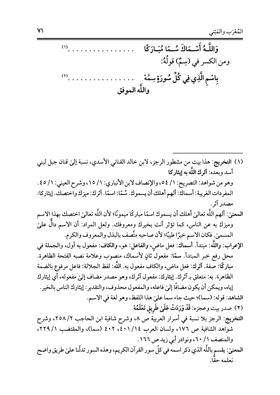 وَاللَّهُ أَسْمَاكَ سُمًا مُبَارَكًا ... ............................. (¬١)