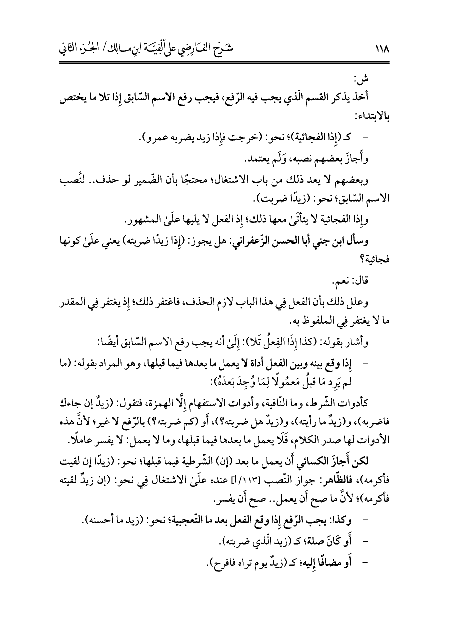 كتاب شرح الفارضي على ألفية ابن مالك (اسم الجزء: 2)