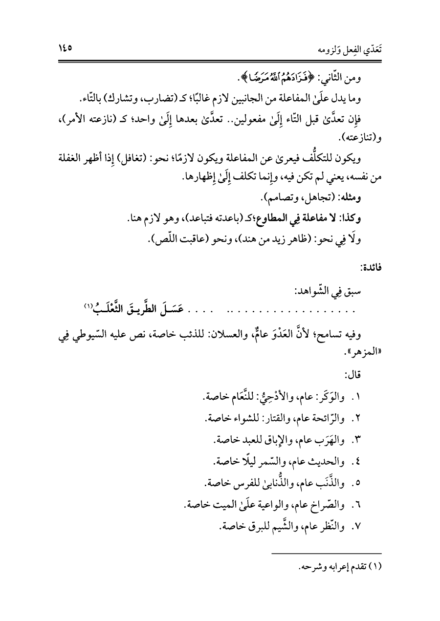 فإِن تعدَّى قبل التّاء إِلَى مفعولين. . تعدَّى بعدها إِلَى واحد؛ كـ (نازعته الأمر)، و (تنازعته).