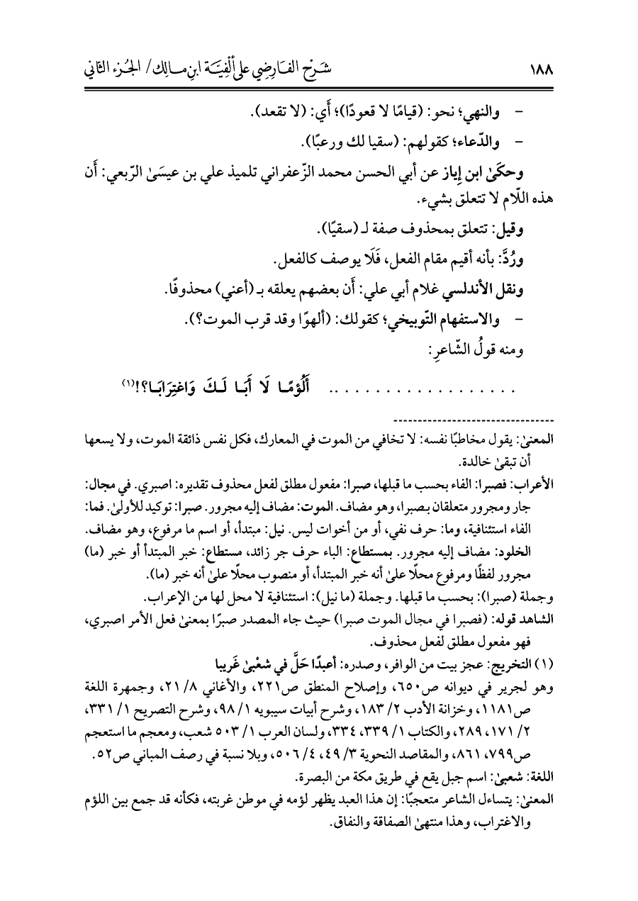 كتاب شرح الفارضي على ألفية ابن مالك (اسم الجزء: 2)