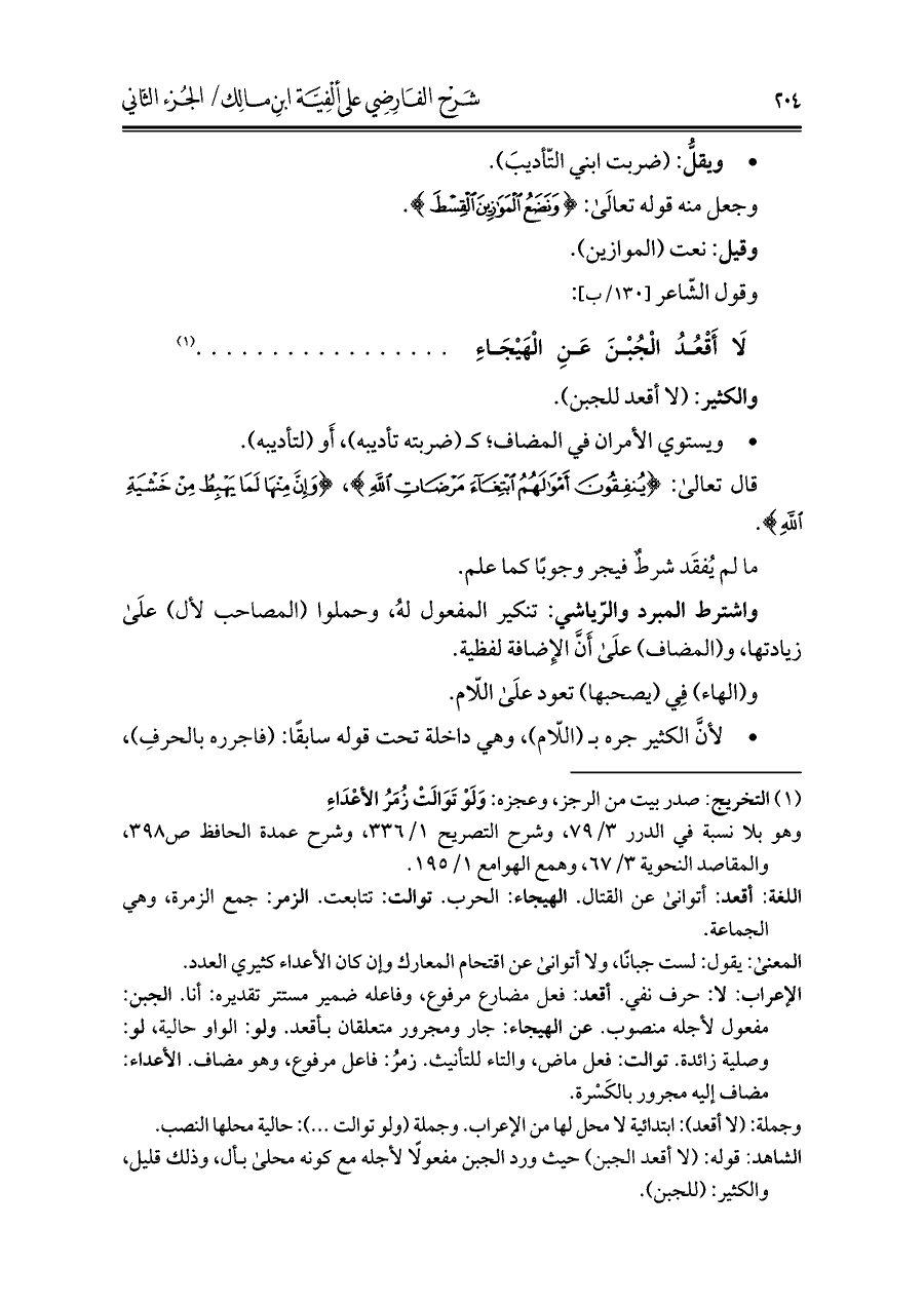 كتاب شرح الفارضي على ألفية ابن مالك (اسم الجزء: 2)