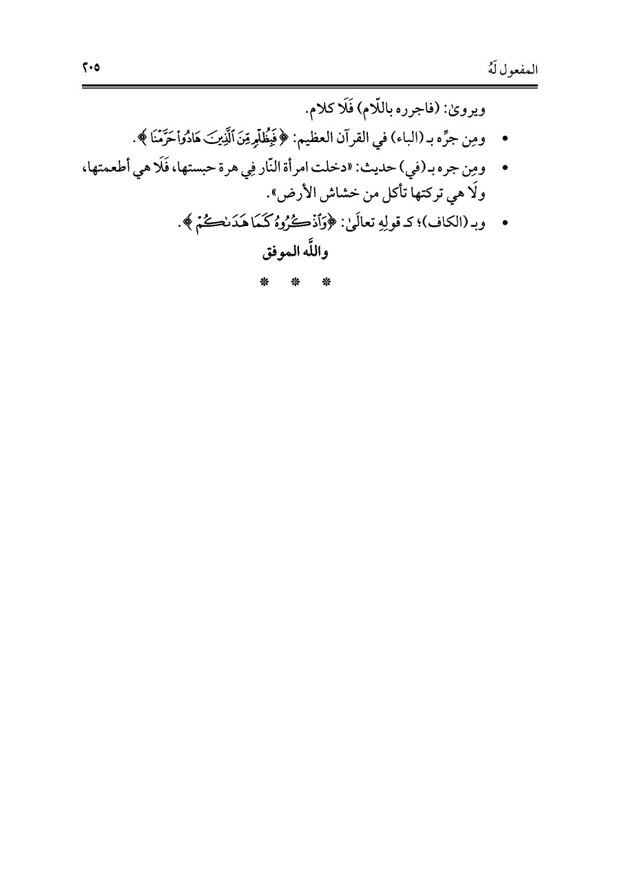 • ومِن جرِّه بـ (الباء) في القرآن العظيم: {فَبِظُلْمٍ مِنَ الَّذِينَ هَادُوا حَرَّمْنَا}.
