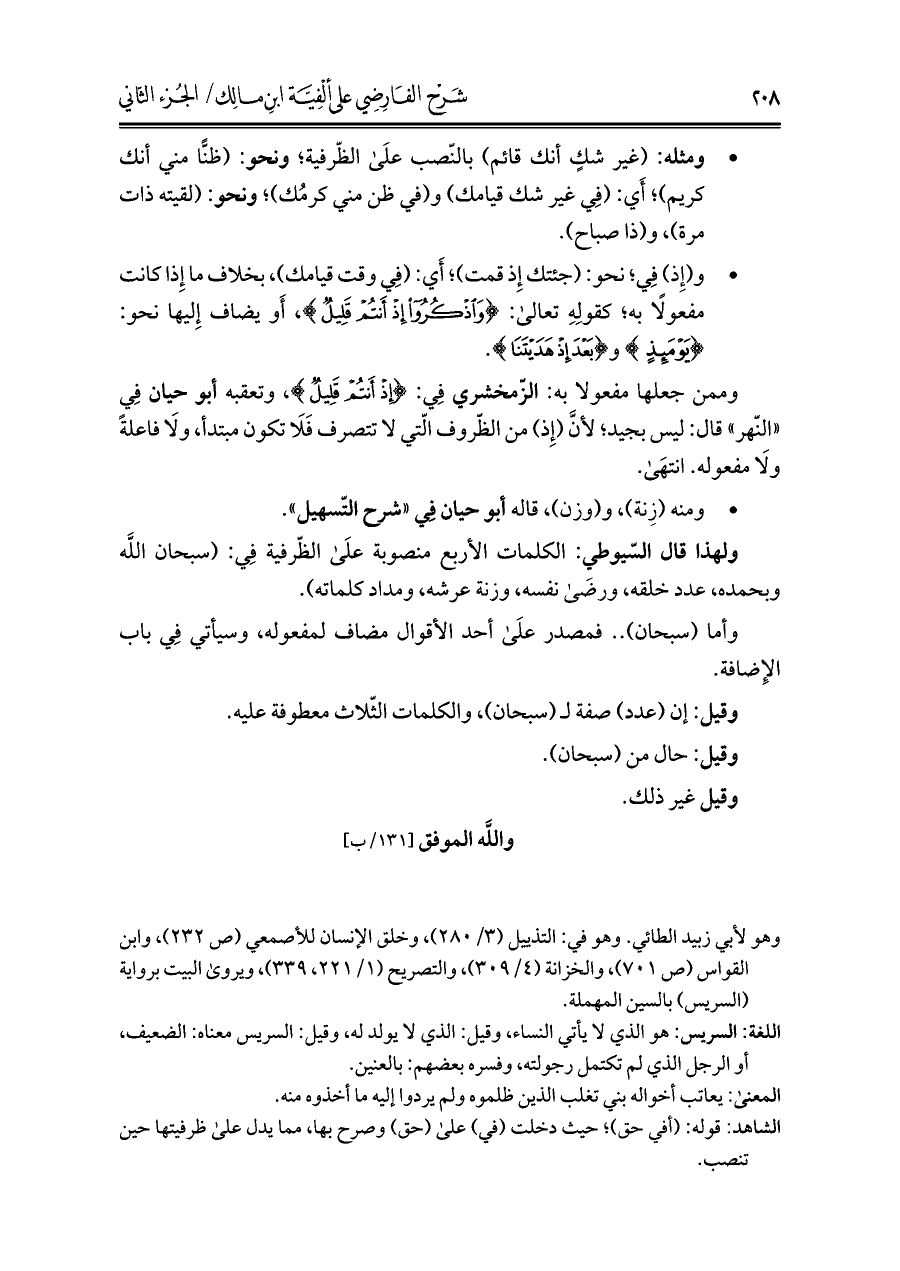 كتاب شرح الفارضي على ألفية ابن مالك (اسم الجزء: 2)