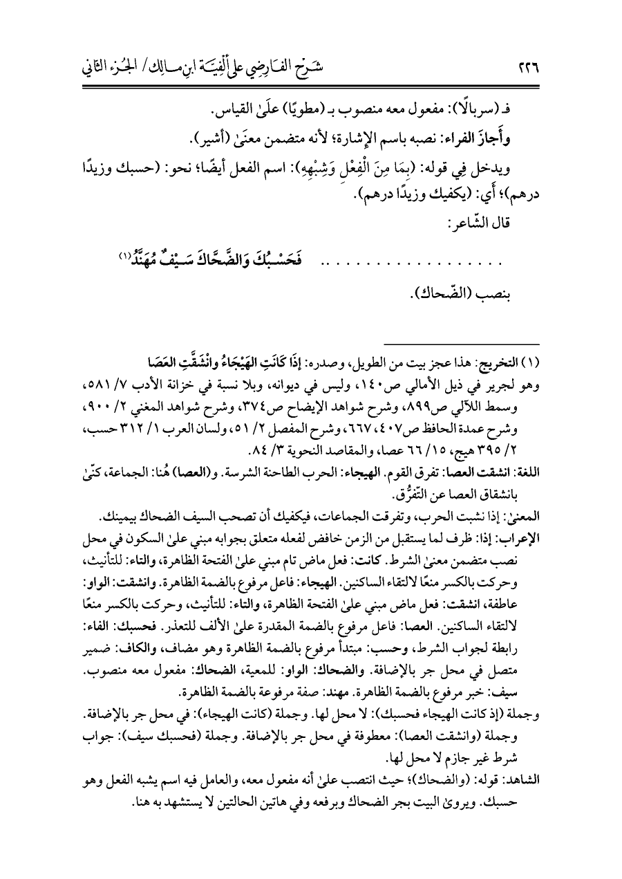 . . . . . . . . . . . . . . ... فَحَسْبُكَ وَالضَّحَّاكَ سَيْفٌ مُهَنَّدُ (¬١)