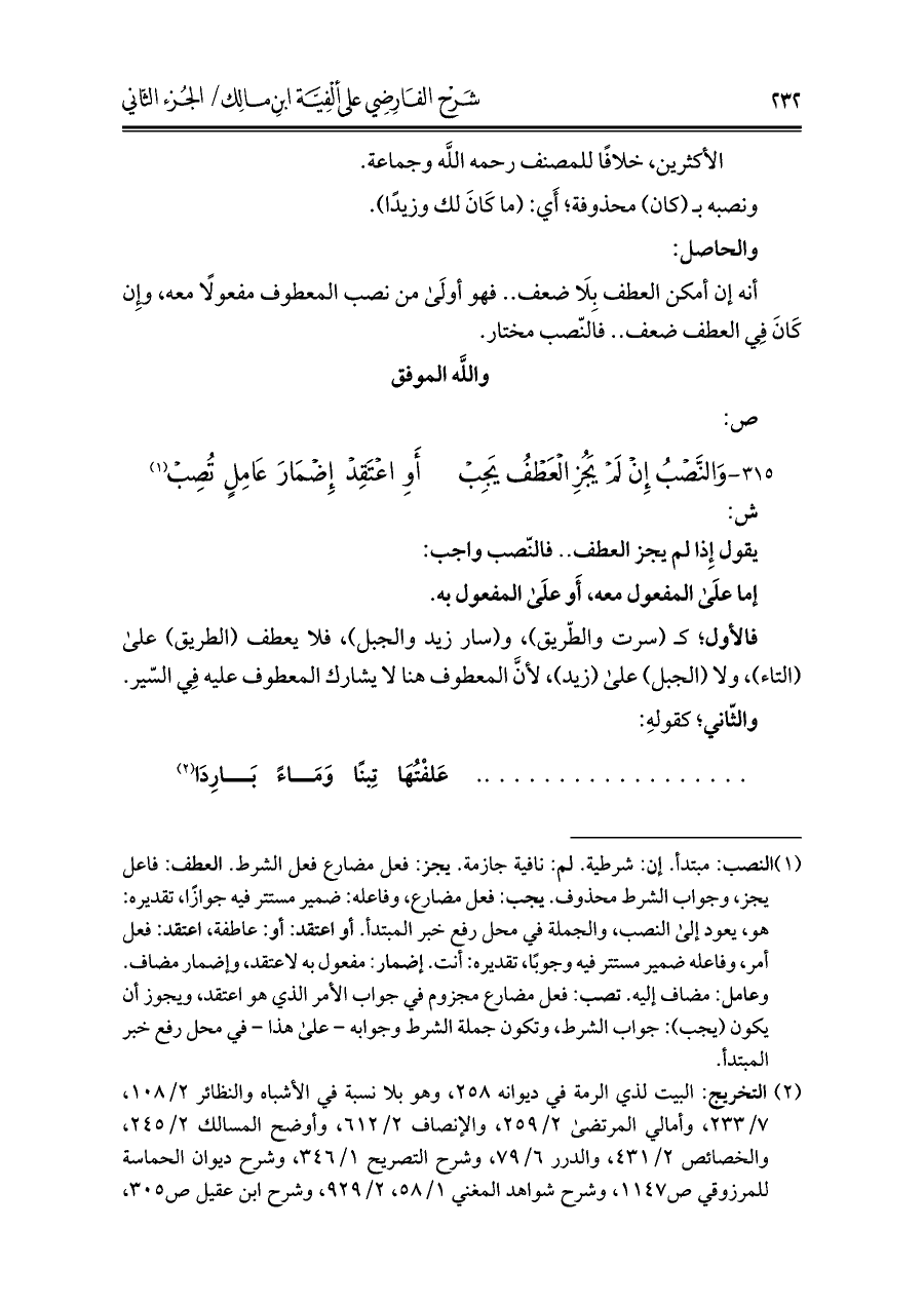 يقول إذا لم يجز العطف .. فالنّصب واجب: