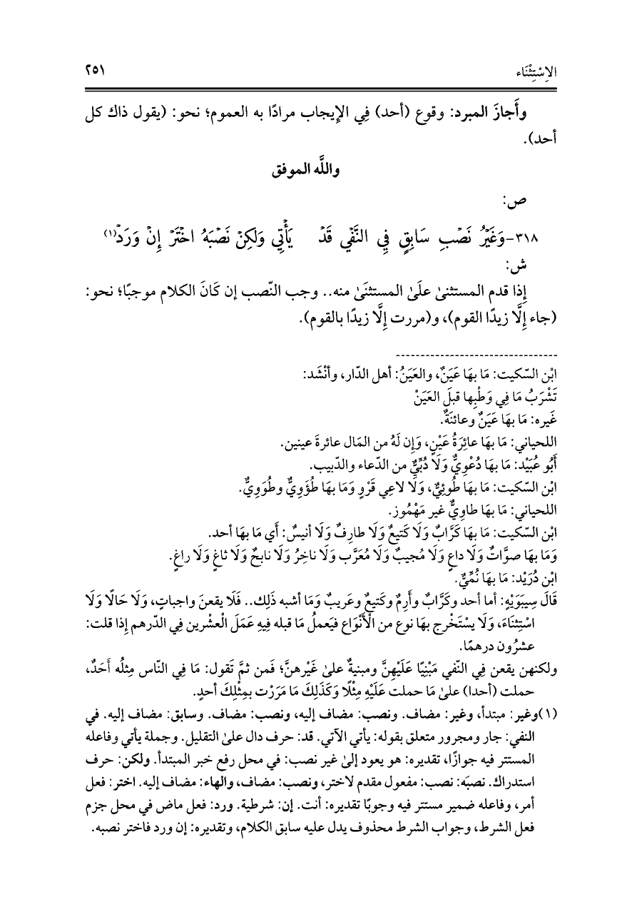 ٣١٨ - وَغَيْرُ نَصْبِ سَابِقٍ فِي النَّفْي قَدْ ... يَأْتِي وَلَكِنْ نَصْبَهُ اخْتَرْ إِنْ وَرَدْ (¬١)