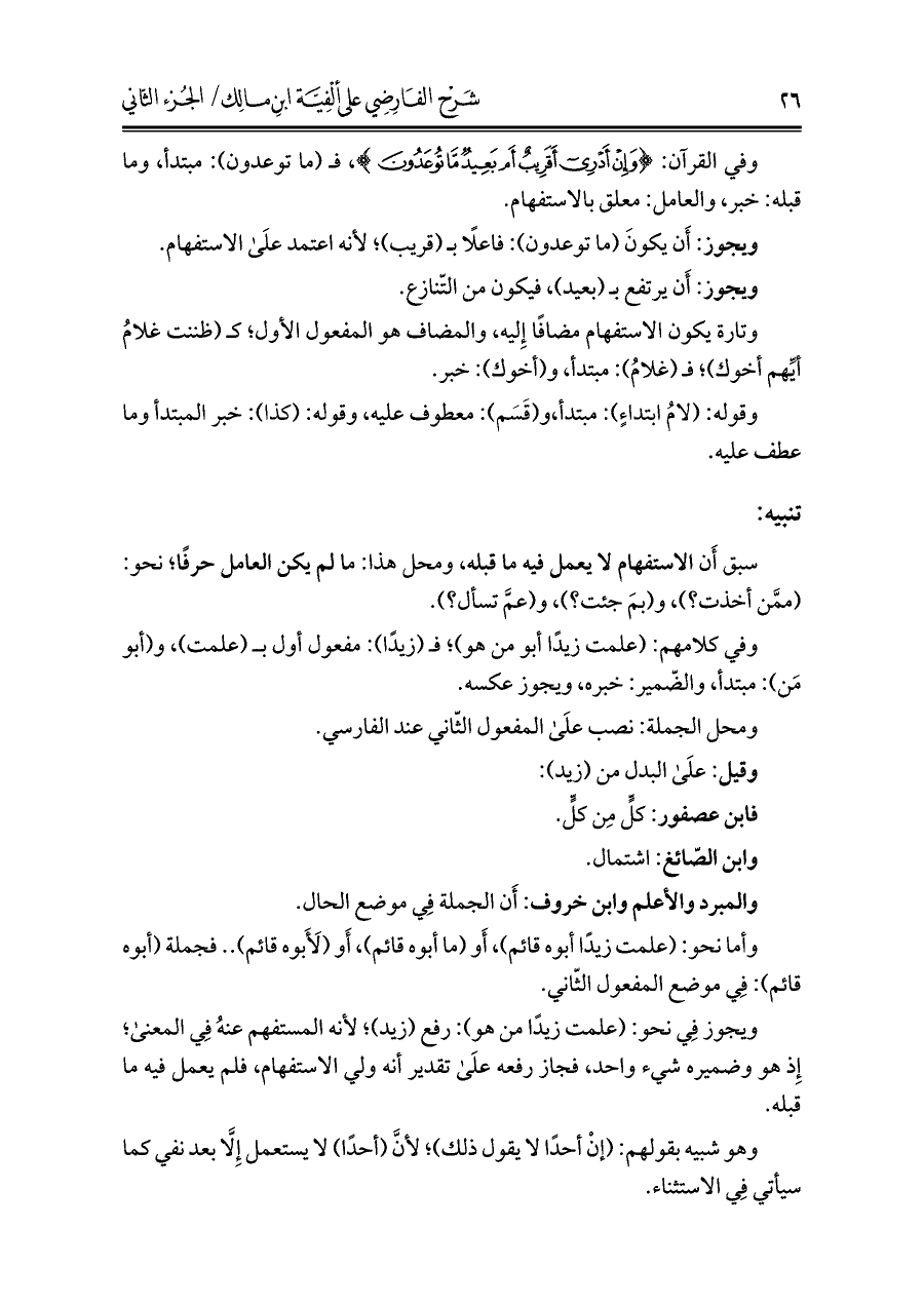 كتاب شرح الفارضي على ألفية ابن مالك (اسم الجزء: 2)