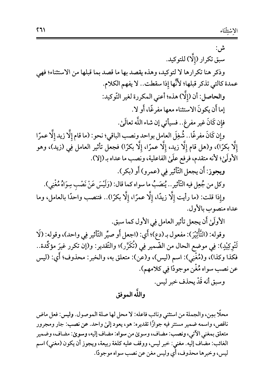 والحاصل: أن (إِلَّا) هذه؛ أعني المكررة لغير التّوكيد: