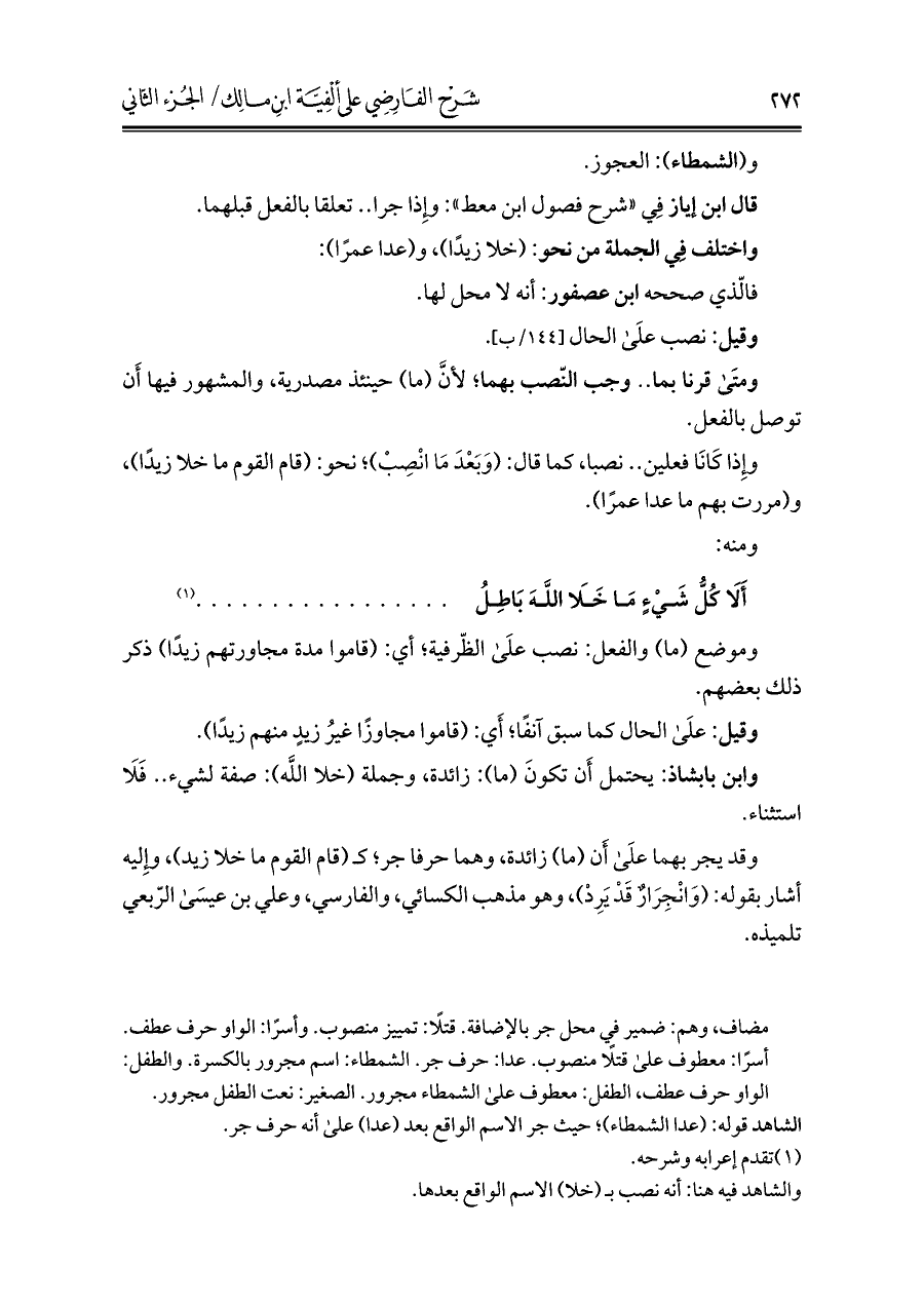 كتاب شرح الفارضي على ألفية ابن مالك (اسم الجزء: 2)