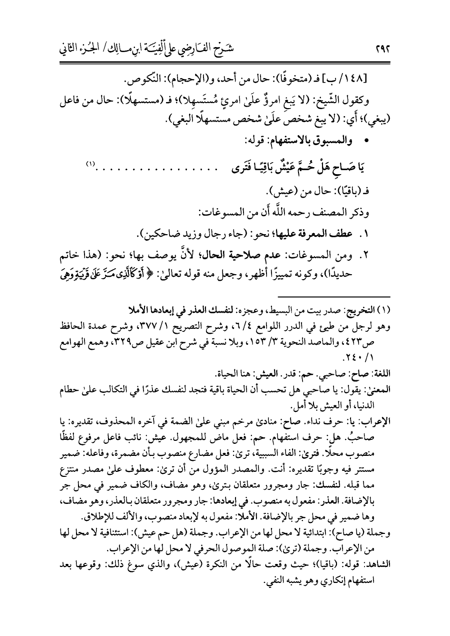 كتاب شرح الفارضي على ألفية ابن مالك (اسم الجزء: 2)