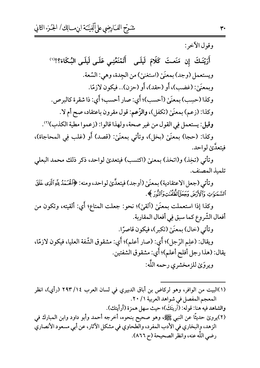 كتاب شرح الفارضي على ألفية ابن مالك (اسم الجزء: 2)