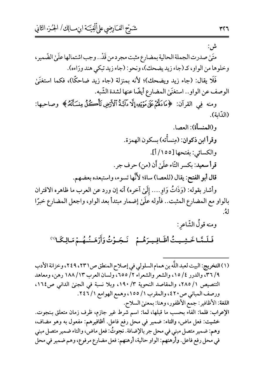 كتاب شرح الفارضي على ألفية ابن مالك (اسم الجزء: 2)