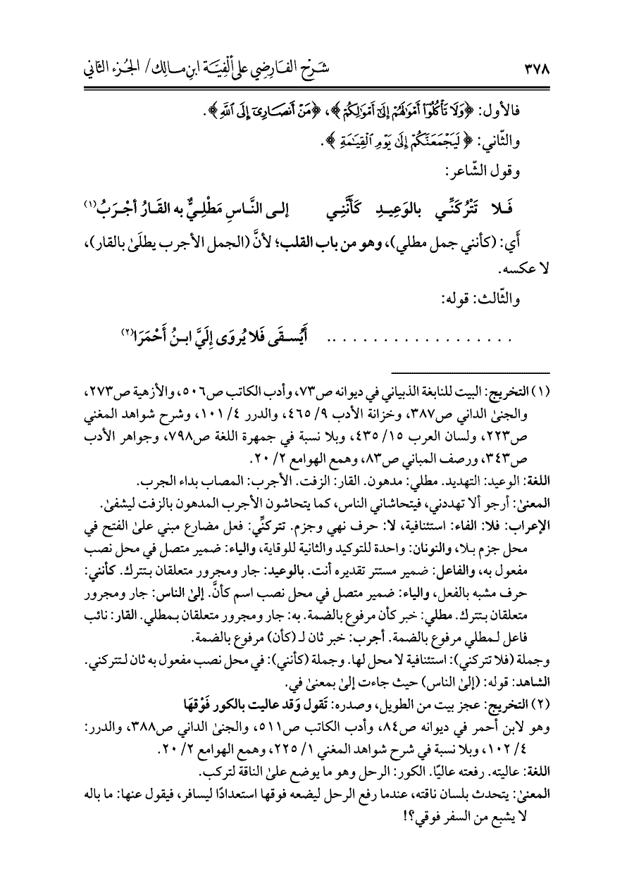 كتاب شرح الفارضي على ألفية ابن مالك (اسم الجزء: 2)