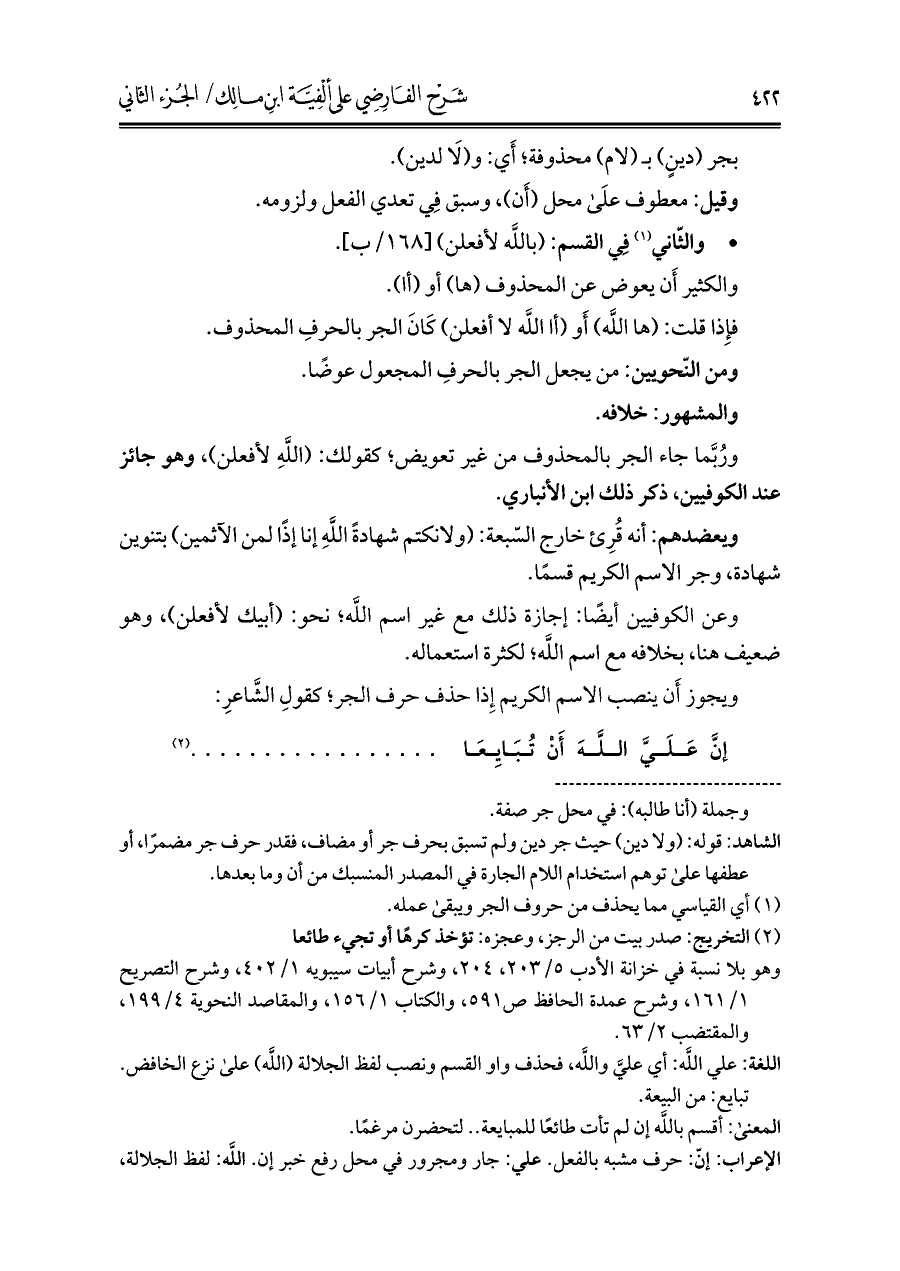 كتاب شرح الفارضي على ألفية ابن مالك (اسم الجزء: 2)