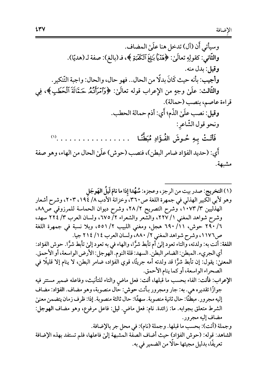 وسيأتي أَن (أل) تدخل هنا علَى المضاف.