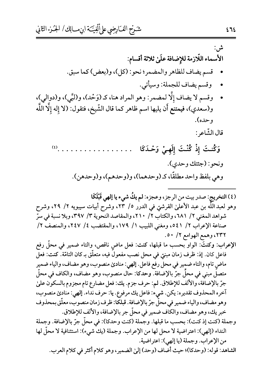 كتاب شرح الفارضي على ألفية ابن مالك (اسم الجزء: 2)