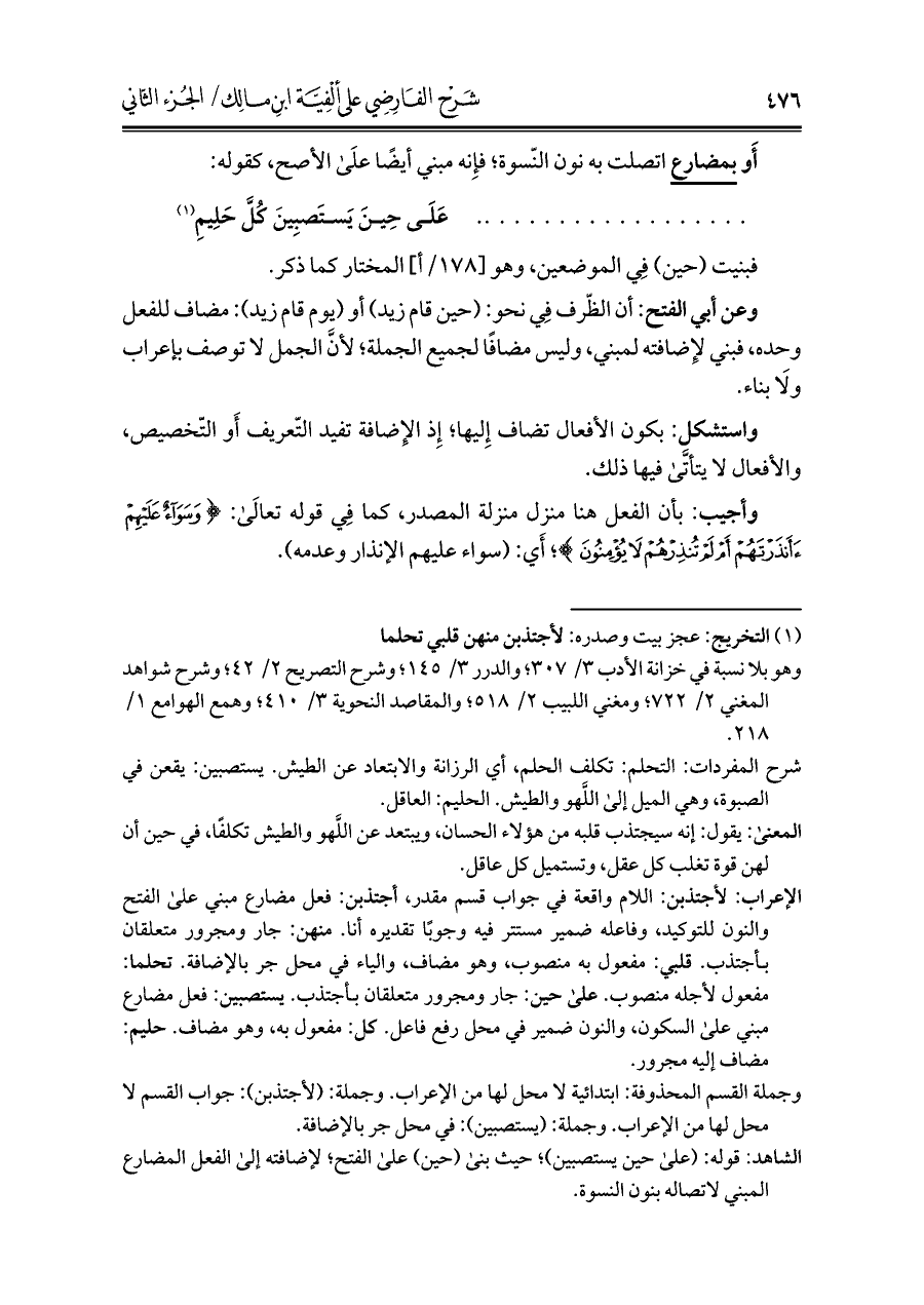 كتاب شرح الفارضي على ألفية ابن مالك (اسم الجزء: 2)