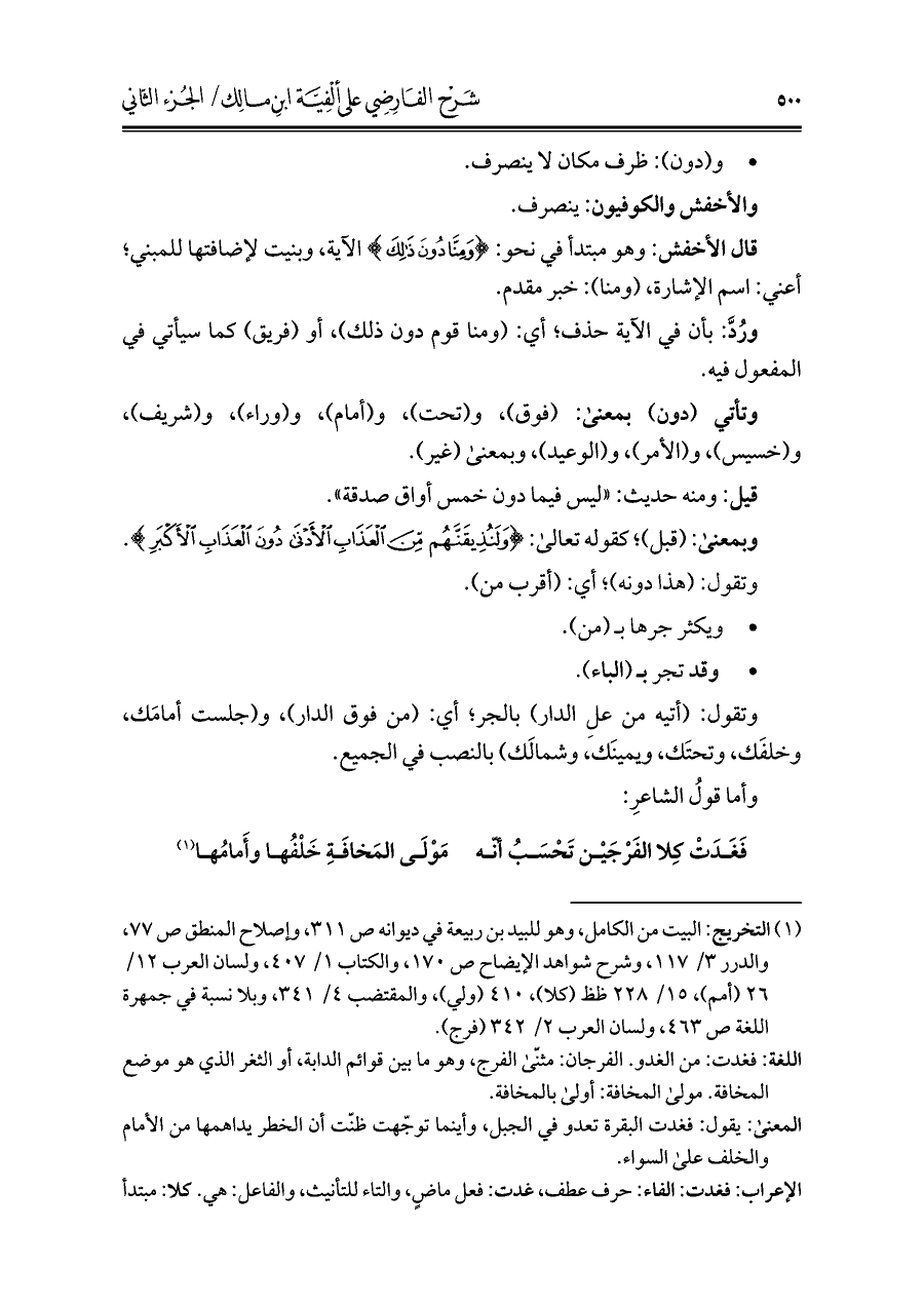 كتاب شرح الفارضي على ألفية ابن مالك (اسم الجزء: 2)