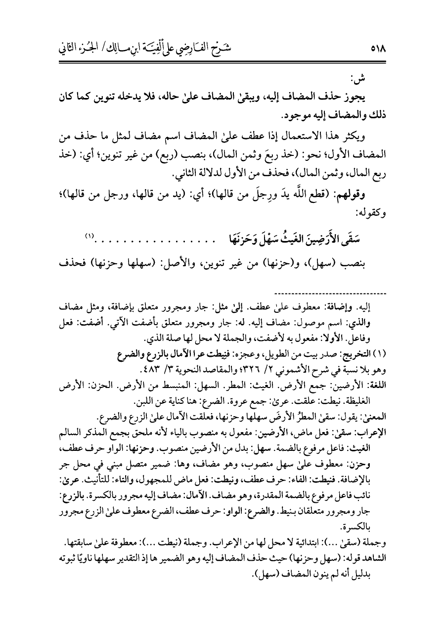 كتاب شرح الفارضي على ألفية ابن مالك (اسم الجزء: 2)