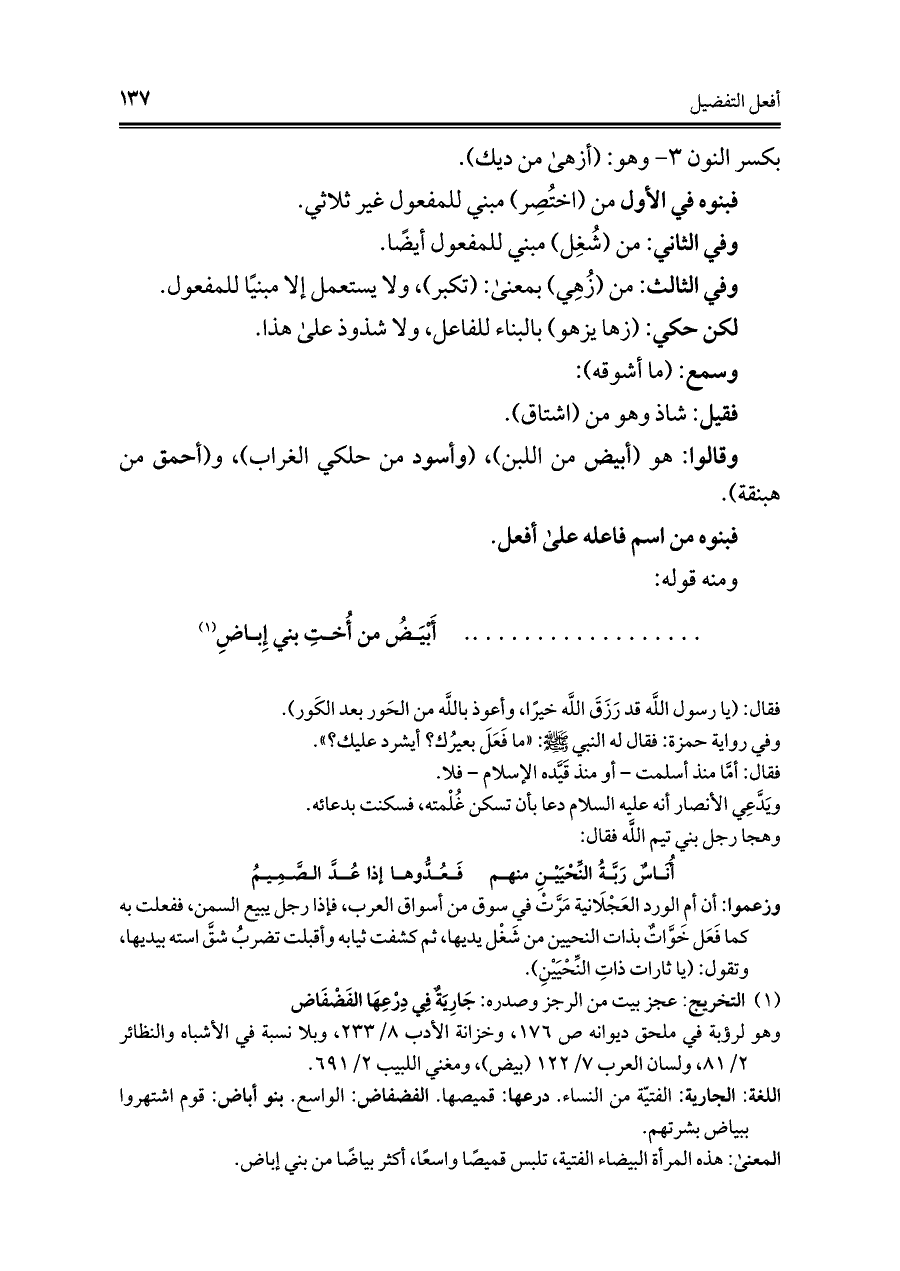 اللغة: الجارية: الفتيّة من النساء. درعها: قميصها. الفضفاض: الواسع. بنو أباض: قوم اشتهروا ببياض بشرتهم.