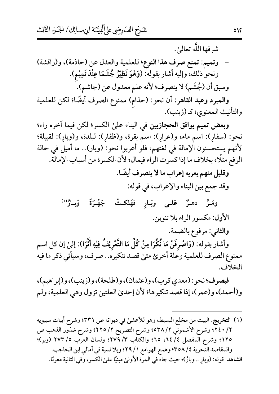 كتاب شرح الفارضي على ألفية ابن مالك (اسم الجزء: 3)
