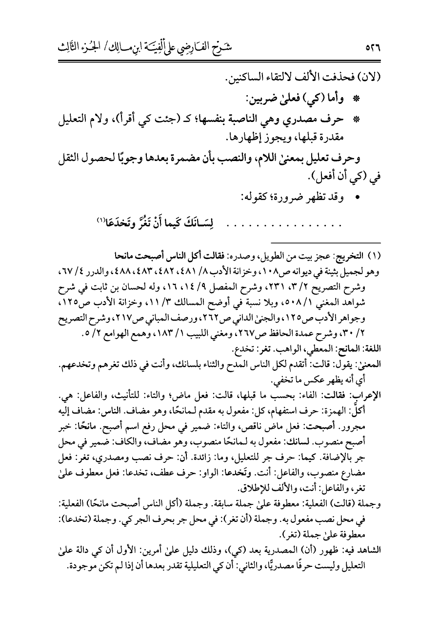 كتاب شرح الفارضي على ألفية ابن مالك (اسم الجزء: 3)