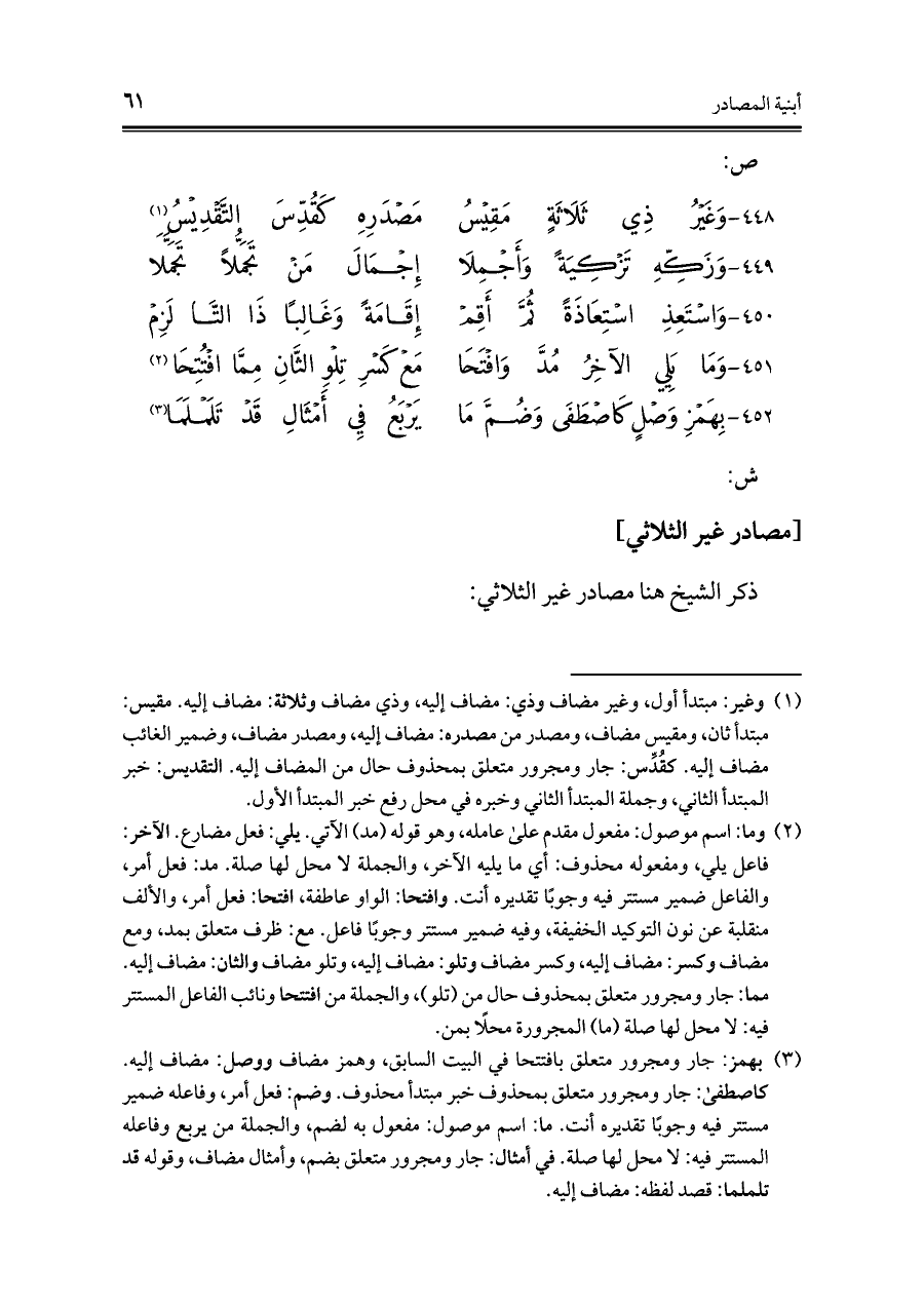 ذكر الشيخ هنا مصادر غير الثلاثي: