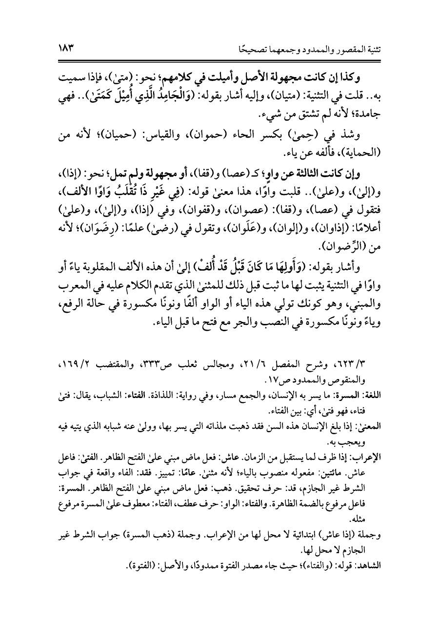 = ٣/ ٦٢٣، وشرح المفصل ٦/ ٢١، ومجالس ثعلب ص ٣٣٣، والمقتضب ٩/ ١٦٢، والمنقوص والممدود ص ١٧.